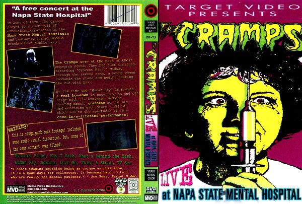 “In June of 1978, The Cramps played to a room full of enthusiastic patients at the Napa State Mental Institute and instantly established a benchmark in public rock. The Cramps were at the peak of their engaging sound. They had just finished recording “Gravest Hits”. Midway through the second song, a young woman commands the stage and begins sharing the mic with Lux.
