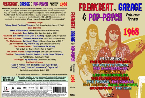 Freakbeat, Garage & Pop-Psycho Rarities Series: This stunning 6 volume release is NOT your regular collection of 60’s performances that you have seen before. They are primarily English speaking 60’s Garage and Psych artists performing on RARE French TV shows in the 1960’s.