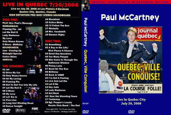 Paul McCartney – Quebec, Ville Conquise! (2008) (UPGRADED QUALITY IN 2020) (2 PAL DVD-R discs)