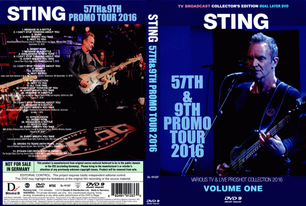 Sting – 57th & 9th Promo Tour – Volume 1 (2016) (1 Dual Layer DVD+R disc)