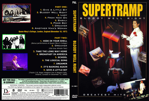 Supertramp live in London in 1977 plus Roger Hodgson live in Niagara Falls, Ontario, Canada on Dec-31-2008).