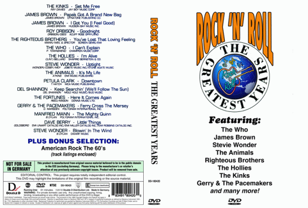 Various Artists – Rock ‘N’ Roll The Greatest Years (1 NTSC DVD-R disc)
