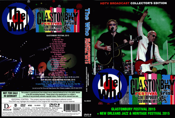 Who – Glastonbury Festival (2015) (1 Dual Layer DVD+R disc)